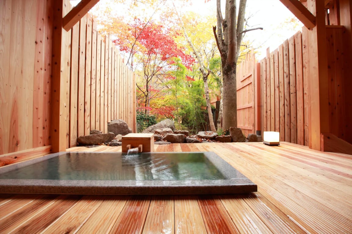 囲炉裏を楽しめる部屋から、一枚岩をくり貫いた御影石の露天風呂がある部屋、茶室付きの和室など時代を色濃く残した客室もあります。
