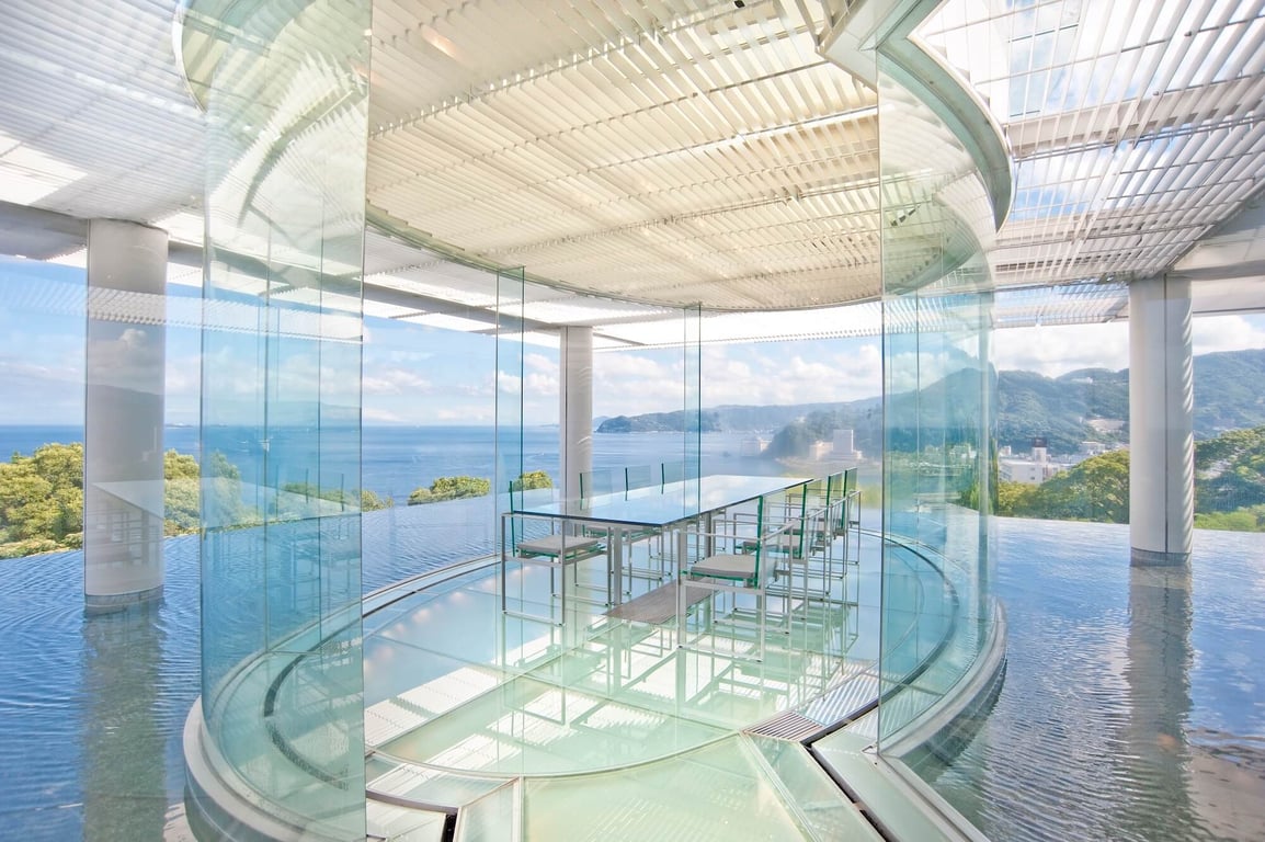 静岡県にある全室に温泉露天風呂とオーシャンビューのテラスが付くホテル。