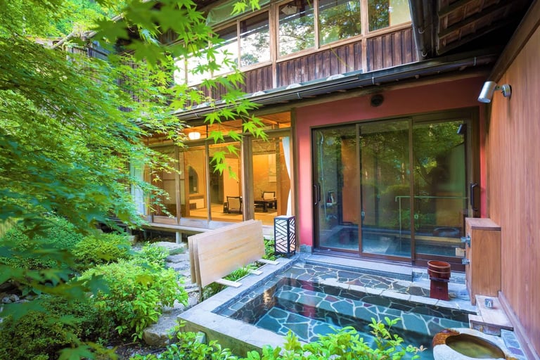 湯は下呂の名湯を源泉掛け流しで、内湯・露天どちらも楽しめます。貸切露天風呂もあり、竹林を眺めながら湯に浸かる時間は格別のひととき。