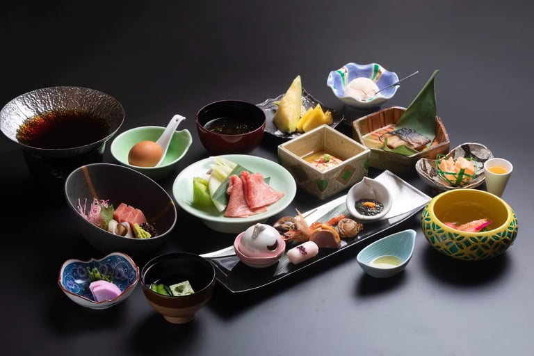 夕食は岐阜や飛騨の旬を取り入れた会席料理。名物「筏師鍋」や「信長饗応膳」など、土地の文化を映す献立が舌と心を満たします。また、個室や部屋食にも対応し、ゆったりとしたひとときを過ごせます。