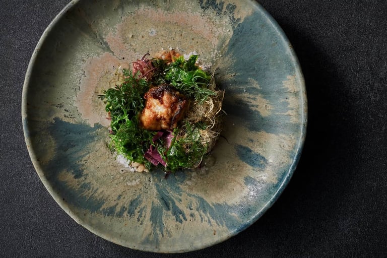 食事は、菊池や熊本の生産者から届く新鮮な食材を使った創作料理。季節ごとの野菜や肉、山の幸を、オーベルジュらしく美しい器に盛り付け、素材そのものの力を引き出した美食を味わえます。