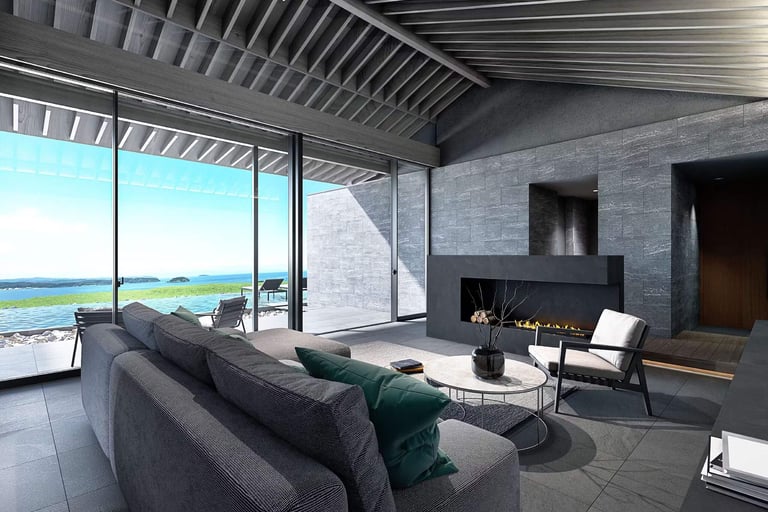 昼は光が差し込むラウンジで海を眺め、夜はしっとりとしたバー空間でゆったりと過ごす。時間帯で表情を変える建築デザインもまた印象的です。