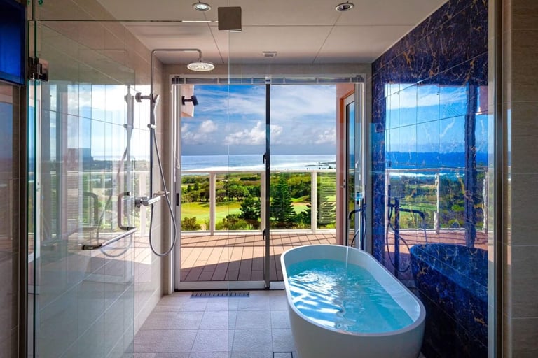 客室はゆとりがあり、バルコニーやテラスからは、水平線を眺めながら、波音をBGMに静かな時間を過ごせます。