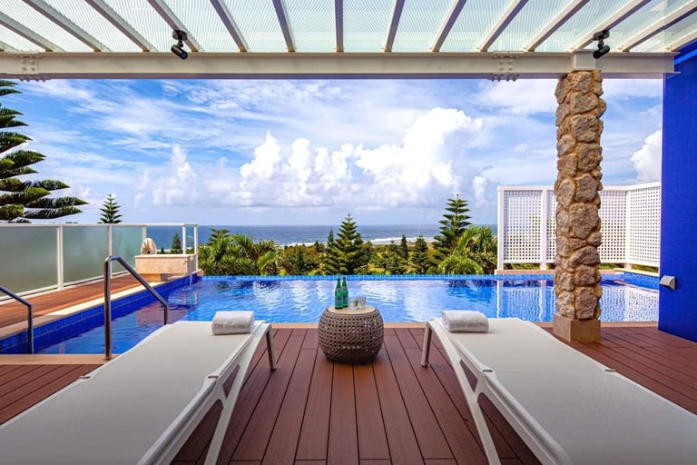 海と空がひとつになるような景色と、プールやスパで過ごす穏やかな時間。