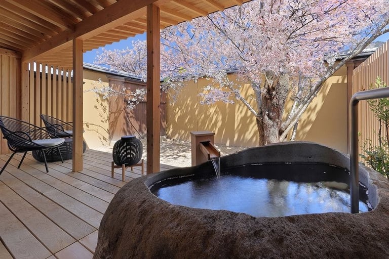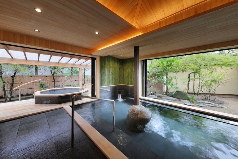源泉かけ流しの温泉や、和の趣あふれる空間を通して、高級ホテルの醍醐味を味わうことも。