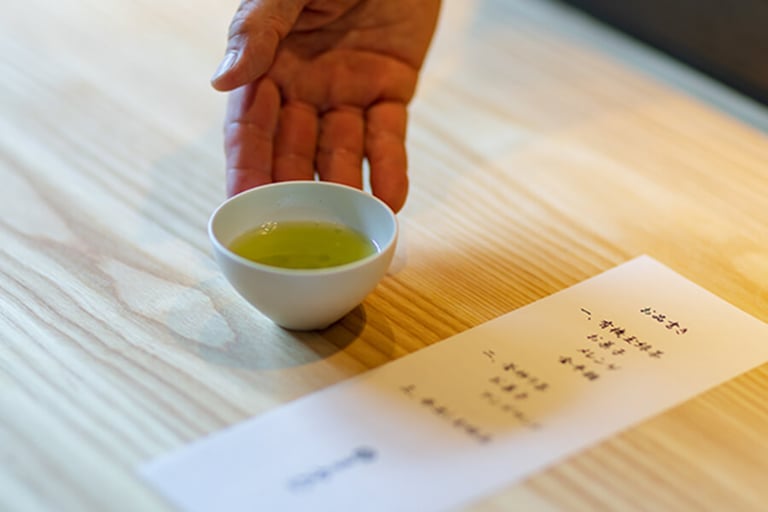母屋に設けられたティーセレモニールームでは、地元茶農家の三代目茶師によるティーセレモニーを毎日開催。嬉野茶の文化や歴史、淹れ方、お菓子とのペアリングなど、五感を使ってお茶に向き合う体験ができ、茶を“飲む”だけでなく、“知り、感じ、味わう”時間を楽しめます。