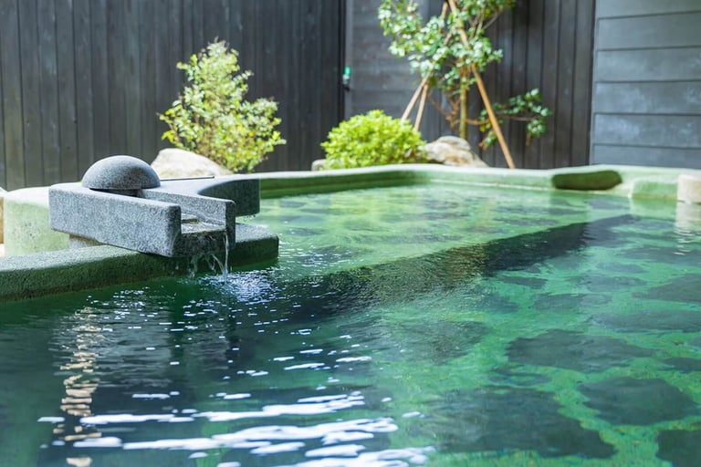 全36室の客室には、源泉100%かけ流しの嬉野温泉を完備。とろみのある湯ざわりは、日本三大美肌の湯として知られ、入浴後は肌がしっとりとなめらかになります。