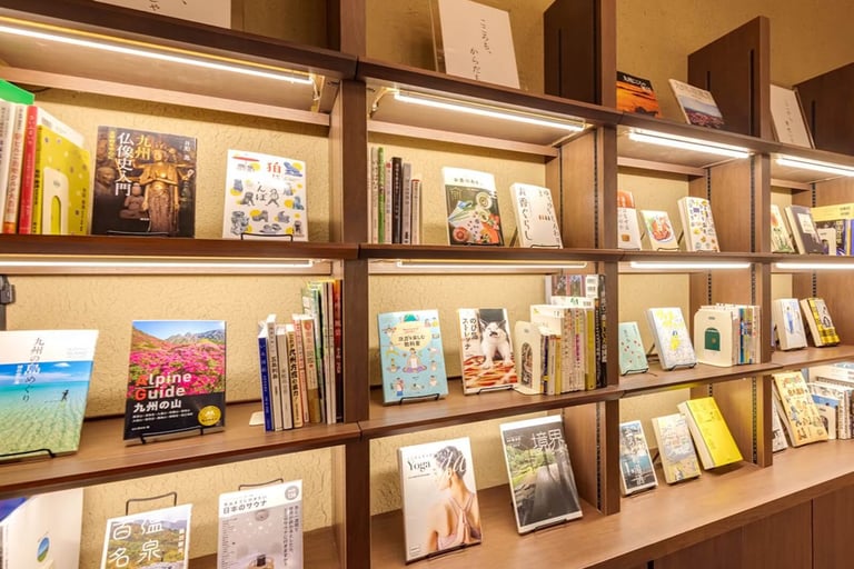 館内には、お土産処やライブラリーも。オリジナルグッズや専属茶師が育てた嬉野茶など、旅の記憶に残る品々が揃うほか、嬉野とその周辺88キロ圏内にまつわる本を集めた書棚も設置。お茶、温泉、器、土地の歴史や文化をテーマに、ページをめくりながら西九州に思いを馳せる、知的な余白の時間を過ごせます。