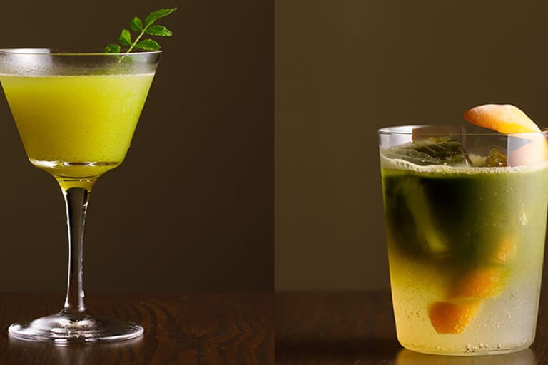 水庭を眺めながら、淹れたてのお茶やお茶カクテルを静かに楽しめるバーも併設。かつてこの地にあった大村藩の別邸の建材を用いた、重厚でありながらぬくもりに満ちた空間で、忘れられない夜のひとときを過ごせます。