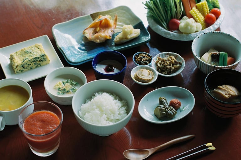 朝食は、手作り豆腐などの和食膳や、採れたて野菜を好きなだけ食べられるサラダビュッフェがいただけます🥗