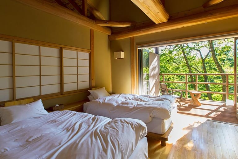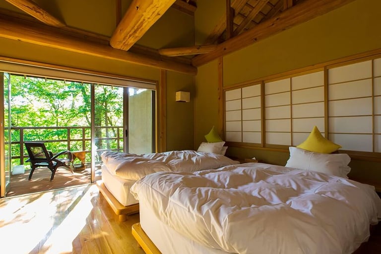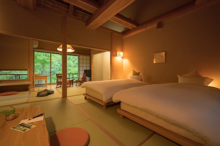 1万坪の広大な自然林の中に18室の離れがある贅沢な宿。
