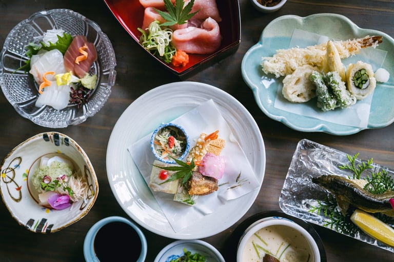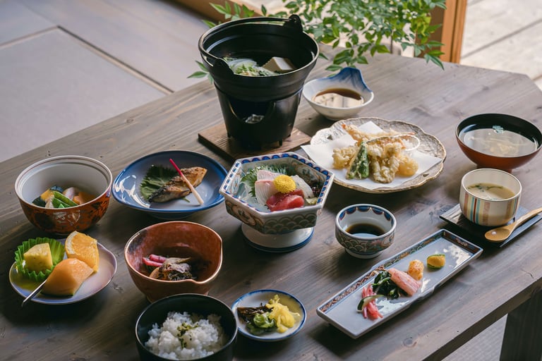 サウナで心と体を整えたあとは、サウナの「整える」考え方を料理に反映して生まれたサ懐石膳 (サウナ懐石膳 )。昆布出汁をベースに、旬の食材を繊細に仕上げ、京都の四季の恵みを一皿一皿に丁寧に込めています。食とサウナ体験が重なり合い、深い静けさと豊かさを味わえる。
