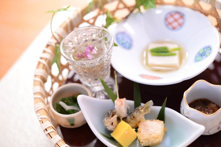 夕食の本格懐石料理は、地元真鶴・相模湾・箱根伊豆の海と山の食材をふんだんに使用🍽 旬を逃さずに提供するため、年に10回ほど献立を変更するというこだわりも。また、懐石料理を引き立てる日本酒やワイン、シャンパンを厳選し、絶妙なマリアージュを堪能。地酒冷酒やワインの飲みくらべセットも用意しています。