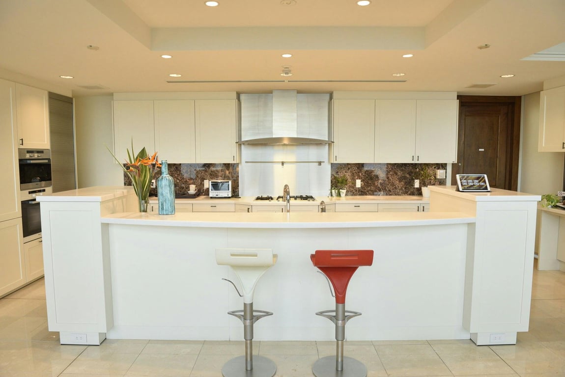 広々としたキッチンには、冷凍冷蔵庫やオーブン、電子レンジ、ホットプレートなど設備が充実していて、室内でも自由に調理ができるのが魅力。