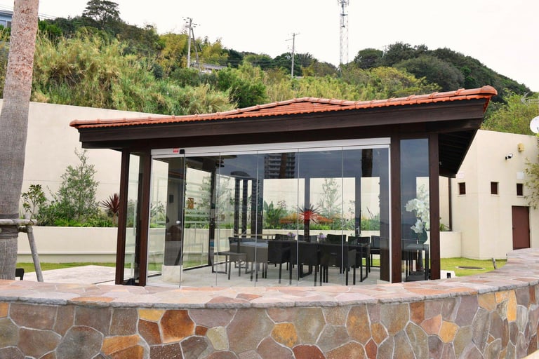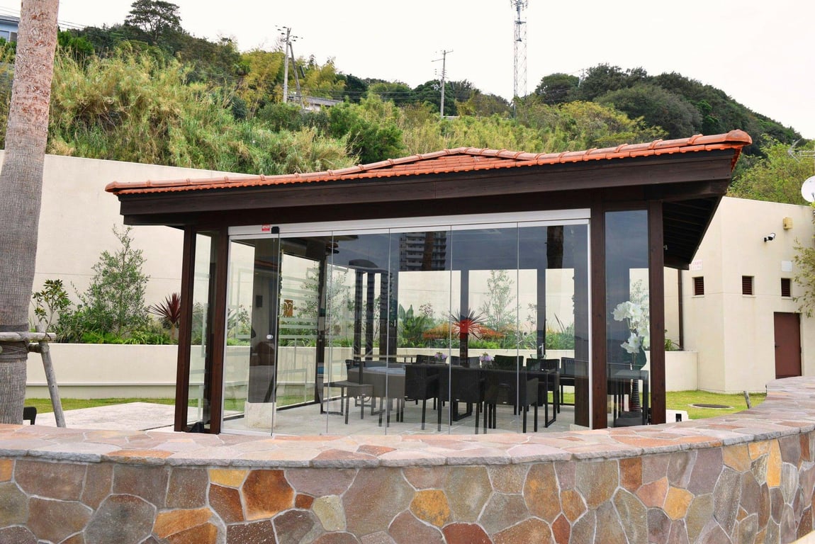 風や光を感じられるガラス張りのオールグラステラスは、心地よくくつろげる空間。