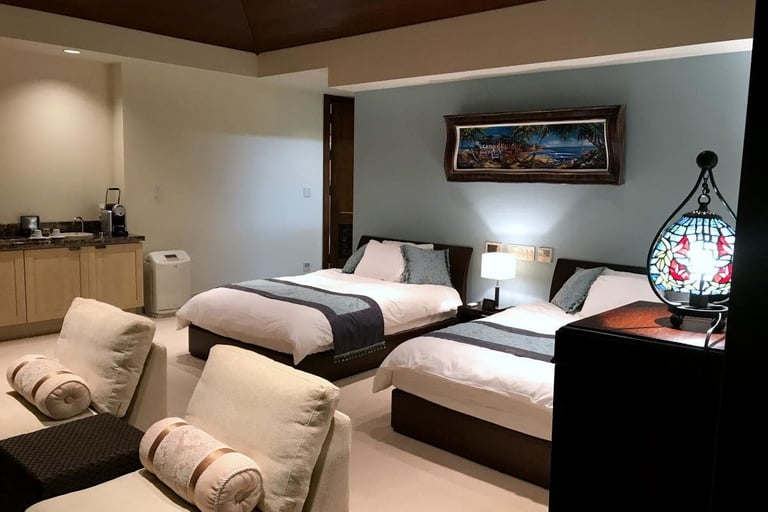 どの部屋からも穏やかなオーシャンビューを楽しめます。一歩足を踏み入れると、大きな窓の向こうには、ゆったりと広がる海の景色。自然の光が優しく差し込み、穏やかな時間を過ごせます。
