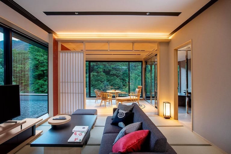 2019年に開業したばかりの伝統と現代性が融合した、豊かな森と川に囲まれたホテル。
