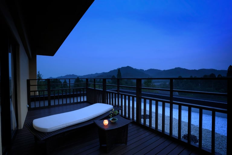 全3タイプの客室は、天蓋付きベットと露天風呂を完備。最上階にある、わずか2室のスイートルームは、広々としたルーフガーデン付き。露天風呂からは四季折々の景色を眺められる開放的な空間で、特別な旅行や記念日のお祝いにもおすすめ。