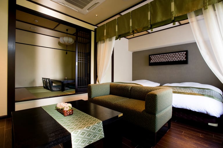 斎王の時代をモダンに再現した和洋室や、大きな窓から差し込む日差しが気持ちよいコンフォートルーム、車椅子利用者でも快適な滞在ができるように配慮されたユニバーサルルームを用意。