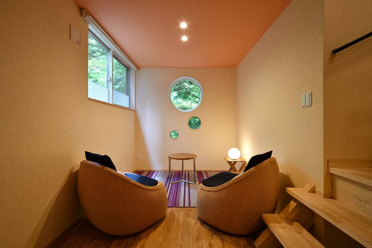 離れ形式の客室は、キャビン5棟とドームテント格納キャビン2棟を用意。天窓のあるベッドルームや、ボルダリングウォール付きの部屋、大きなガラス窓を持つ開放的な客室など、個性豊かなキャビンが揃います。