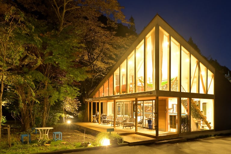 離れ宿のような豪華なグランピングで、豊かな自然と温泉に癒される…