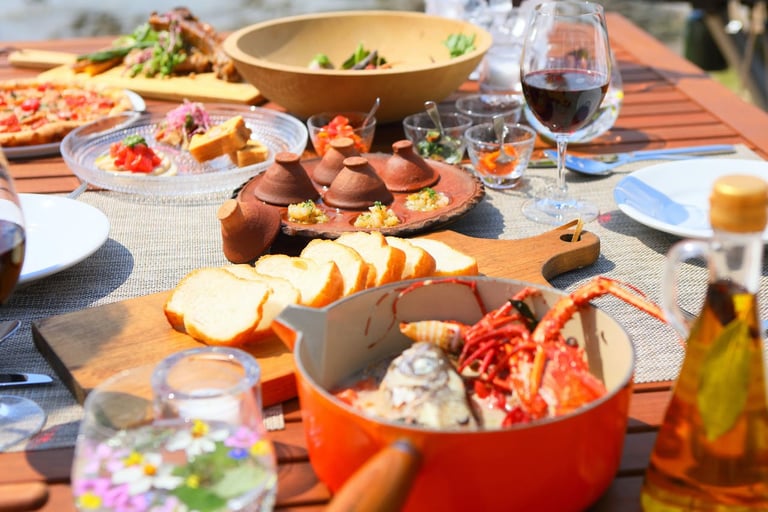 テラスでのカジュアルバーベキューは、自分で火をおこす必要がないガスグリルやカットされた食材が用意されているため、手ぶらで楽しめます。