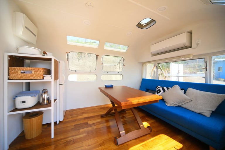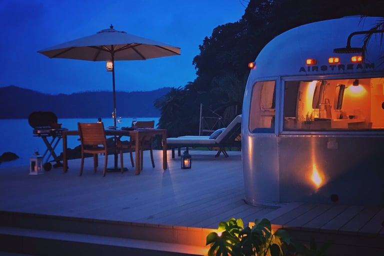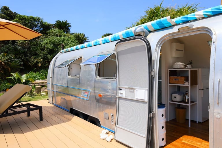 1970年代トレーラーに宿泊&目の前ビーチ独り占め出来る