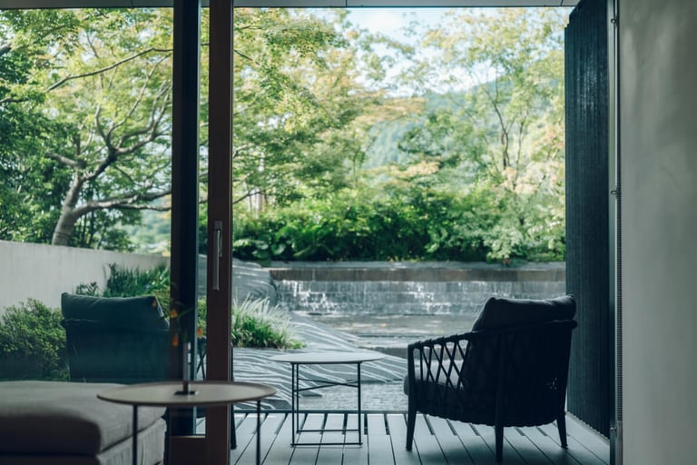 川床のようなテラスから水の流れる庭が楽しめるガーデンテラス、渡月橋と桂川が眺められるリバービュー、嵐山を一望できるマウンテンビュー、戸建ての別邸にいるようなメゾネットなど、好みの部屋を選べます。