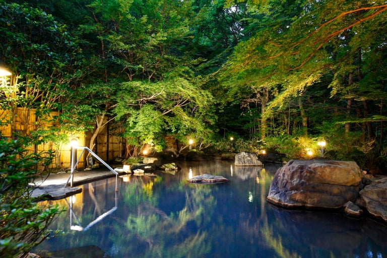 朝の霧に包まれた露天風呂で静かに過ごし、夕暮れには、夕日に染まる木々の影が揺れる景色を眺めながら、自然の風や香りを感じる、心地よいひとときを楽しめます。