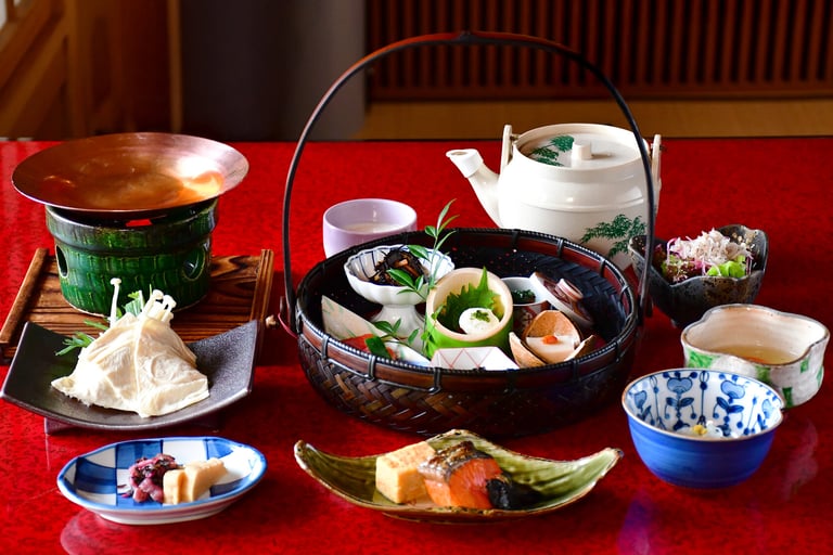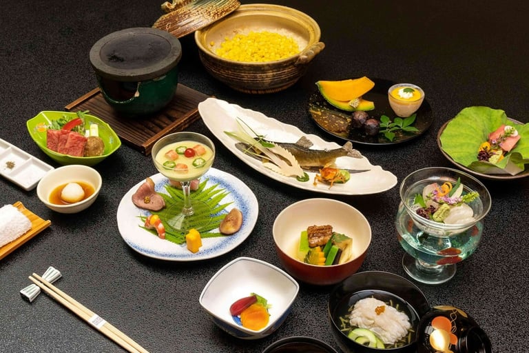 器にもこだわり、有田焼を中心に、京焼や漆器、最近ではモダンな益子焼も取り入れられ、見た目の美しさと季節感を一層引き立てます。