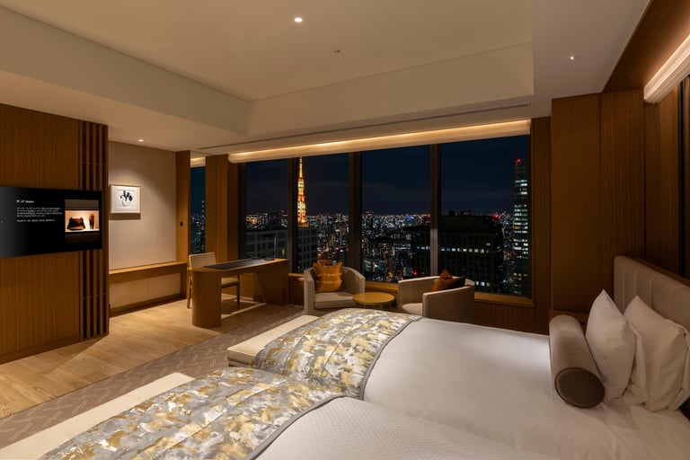 東京の眺望を満喫できるプレステージタワーには、730㎡と国内最大級規模の広さを誇る”インペリアルスイート”があり、プレステージタワー39,40階の二層を使いリビングエリアが吹き抜けに。東京を一望できる”ロイヤルスイート”は、広々とした応接室や書斎を備えたスイートルーム。また、クラブフロアの客室に宿泊すると、優雅な寛ぎの時間を過ごせるクラブラウンジの利用が可能です。