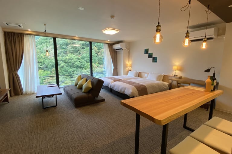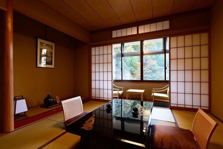 木の香りただよう純和風客室は、源泉かけ流しの露天風呂付き客室、八幡平の山並みや湯瀬渓谷を望むプレミアムビュースイート、庭園が一望できる展望風呂付客室など、贅沢仕様。清流のせせらぎが聞こえ、豊かな自然が眺められる開放的な空間です。