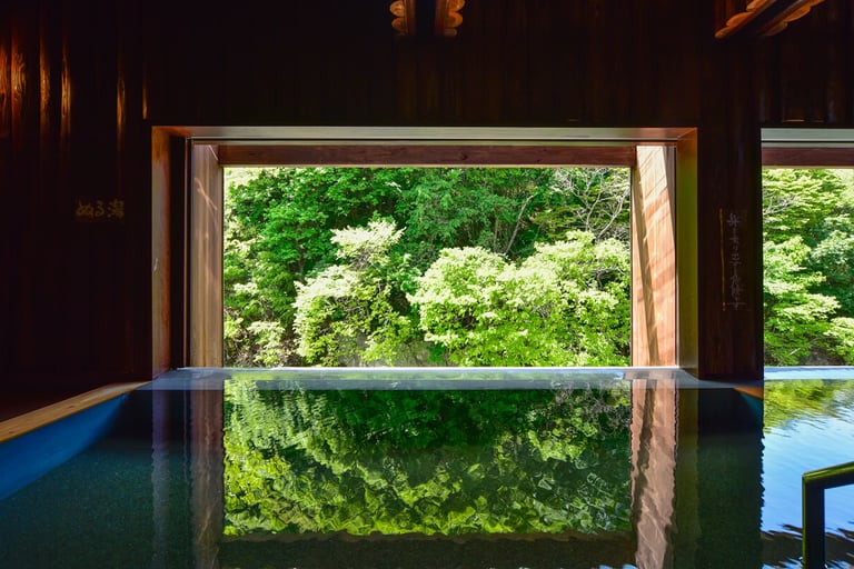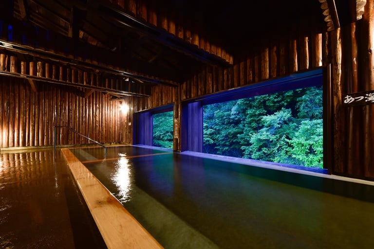 "日本三大美人の湯"としても有名な湯瀬温泉は、二度三度と入浴するうちに、お肌に潤いとみずみずしさがよみがえってくると評判。露天風呂付き大浴場では、渓流のせせらぎを聴きながら寛ぎのひと時を。冬は、雪見露天が体験できる非日常を体験。また、誰にも邪魔されずプライベート空間でゆっくりと過ごせる貸切風呂も完備。
