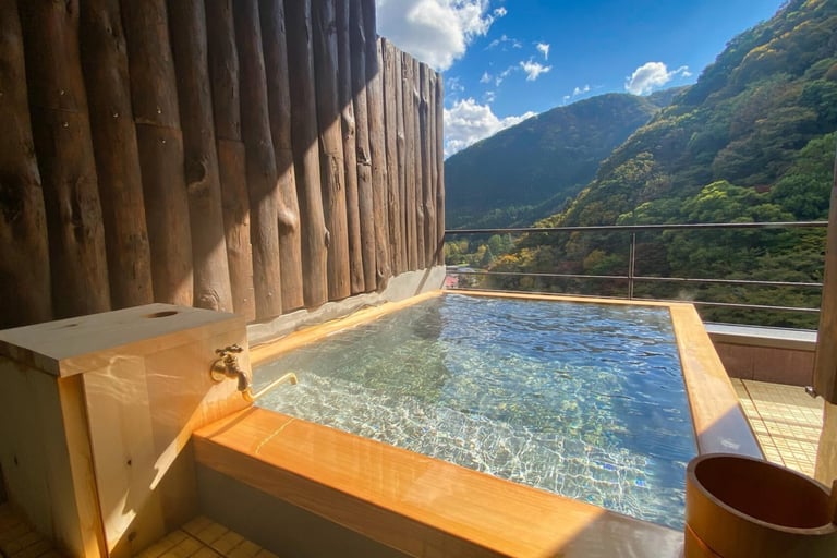 源泉かけ流しの湯に浸かり、美しい自然に癒される…