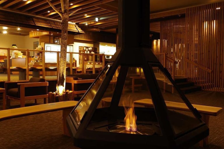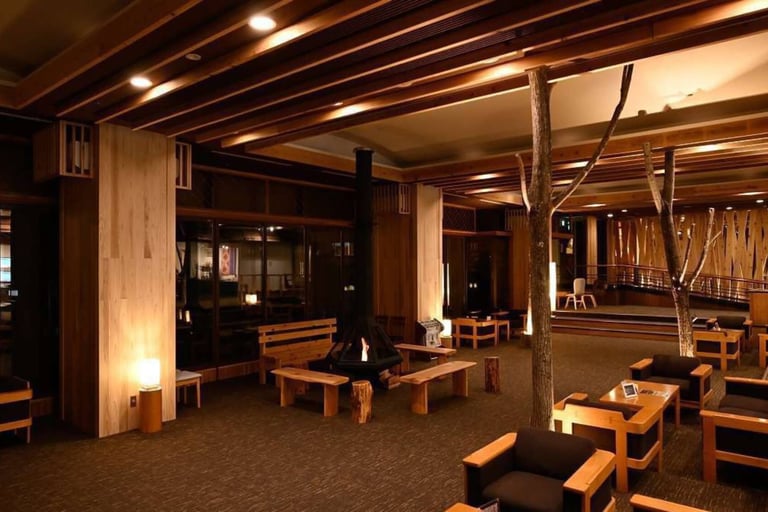 他にも、暖炉の火に癒される広々としたロビー、木のぬくもり感じるライブラリーラウンジなど、寛ぎの空間が。