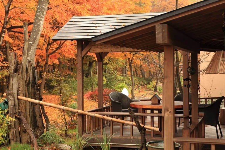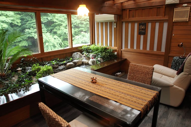 豊かな自然に囲まれた寛ぎの空間は、まるで森の山荘。