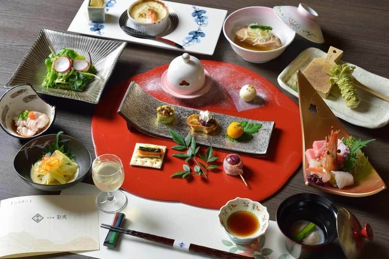 夕食は、部屋によって献立や食材のグレードが異なる本格懐石膳🍽 東北各地の旬の食材や彩冬農園で育った減農薬野菜を使用し、前沢牛のサーロインステーキやアワビの鉄板焼などメイン料理をお好みで選ぶことができます。