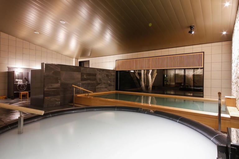 敷地内から湧出する自家源泉「潮騒の湯」をはじめ、ネムノキの樹皮エキスを配合した「合歓の木湯」、真珠成分を贅沢に配合した「真珠の湯」では、美容成分たっぷりの湯にゆったりと浸かりながら、日常の疲れをゆったり癒せます。