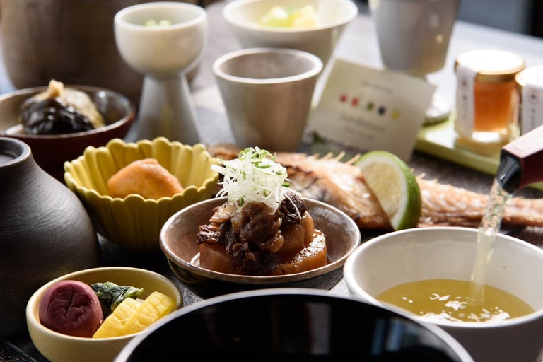 夕食は、地元農家の野菜を中心とした和洋折衷料理🍽 大分の豊後牛シャトーブリアンや、毎朝仕入れる関サバなど絶品が揃います。また、事前に好きな食材・苦手なものをヒアリングして献立を考え、土鍋ご飯の炊き上げるタイミングや普段の食事ペースもお客様毎に合わせて提供するほど、料理へのこだわりがすごい。オリジナルのメニューが楽しめる、贅沢なディナータイムを。