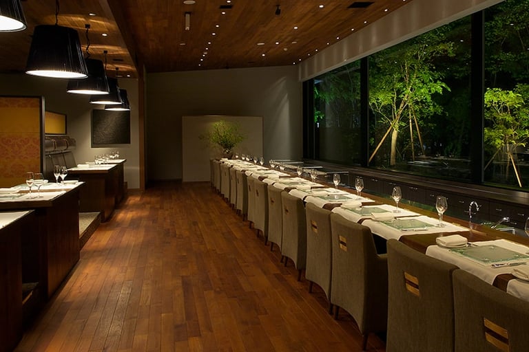 夕食は森の中で食事をしているような空間で、五感を刺激するエモーショナル・フレンチがいただけます🍽️