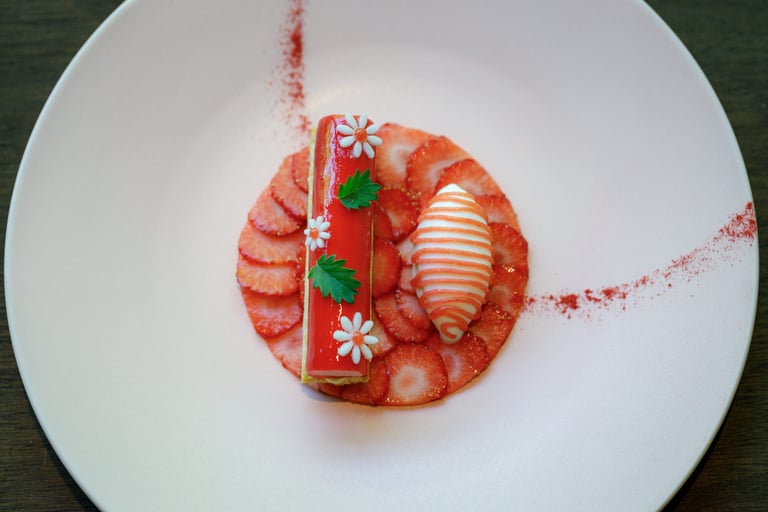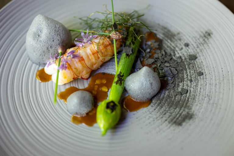 新鮮な魚介や山の幸が豊富な地元・伊豆の食材を使用した、季節によって変わる逸品を堪能。伊豆と深く結びつくことで生まれるインスピレーションが盛り込まれた一皿は、味はもちろん、盛り付けにもこだわり芸術品のような美しさ。