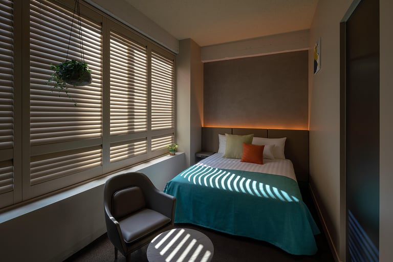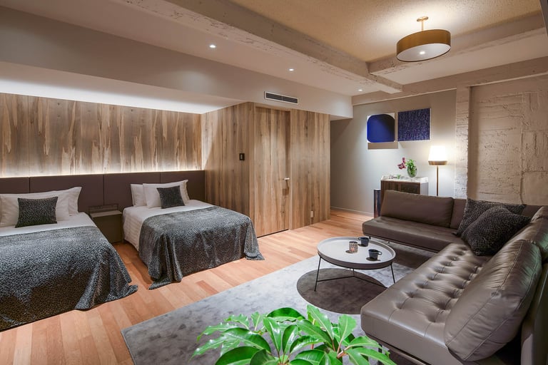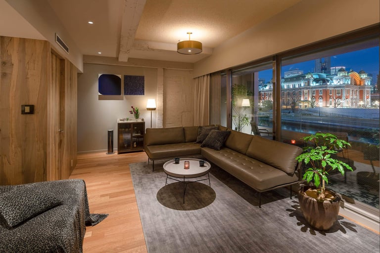 快適のオリジナルパジャマや、こだわりのアメニティが用意されているのも嬉しいポイント。 必要なものを丁寧に選んだアイテムが揃っており、小規模ホテルならではの個人的な心配が感じられます。 余計な 装飾は加えず、シンプルに整えられた空間で、気取らない「ちょうどいい滞在」を楽しめる設計。 旅のスタイルに合わせて、ゆるやかに快適さが用意されています。 リバーサイド・デザイン・静寂。 川の気配が漂う「THE BOLY OSAKA」で、アートと静けさに身をゆだねる滞在を…