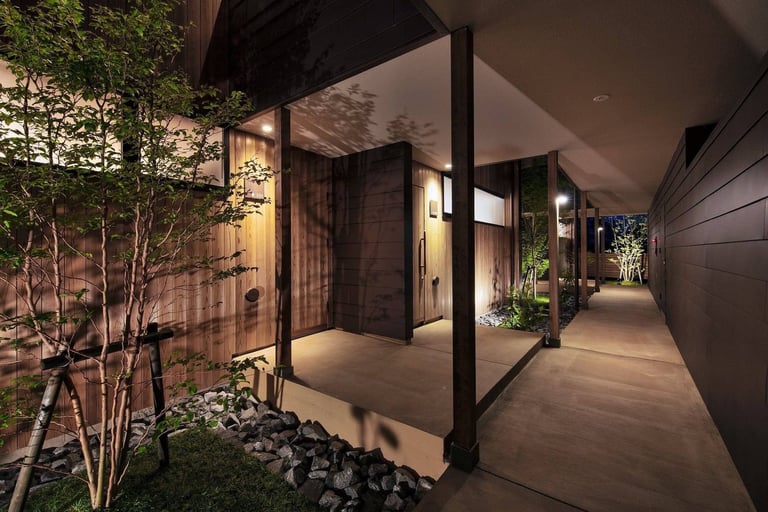 木と石でできた和モダンでスタイリッシュな癒しの空間は、建築家の光浦高史氏がデザイン。