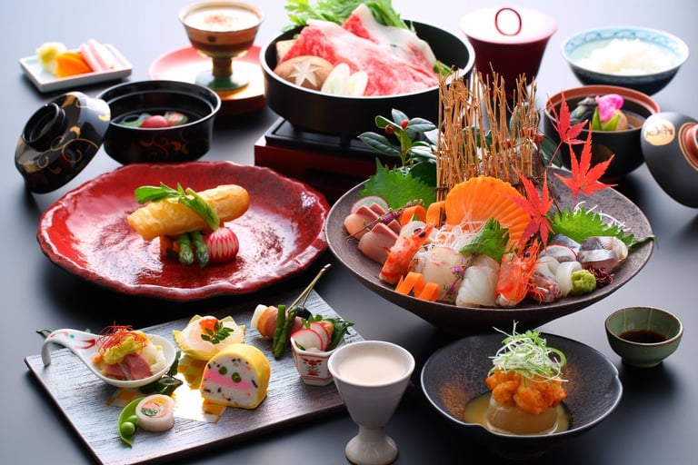 別館のお食事処"雪月花"では、大分でとれた旬の食材をつかった創作和懐石を堪能🍽