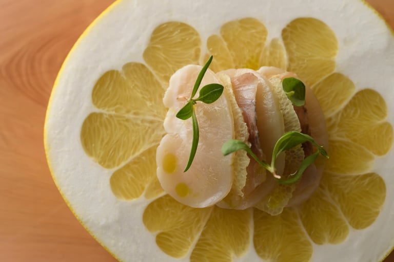 地元・瀬戸田は、新鮮な魚介類、柑橘類、野菜等に恵まれており、季節ごとに自然に採れる食材のみを用いて、食材と土地の魅力を表現。