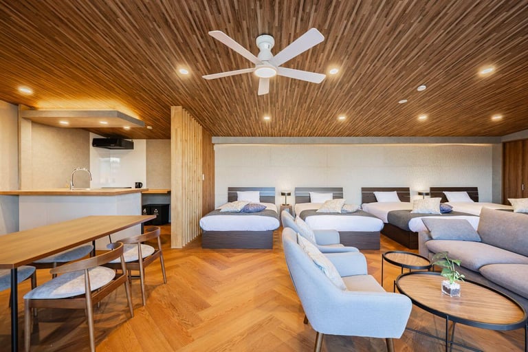 広々とした客室やリビングは、大型犬や複数頭でも安心して過ごせるゆとりある設え。