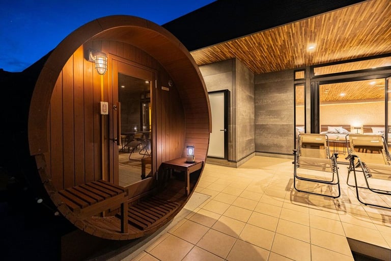 客室から直接アクセスできるプライベートサウナでは、愛犬がそばにいる安心感の中で、自分のペースで“ととのう”時間を。