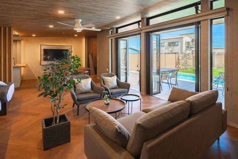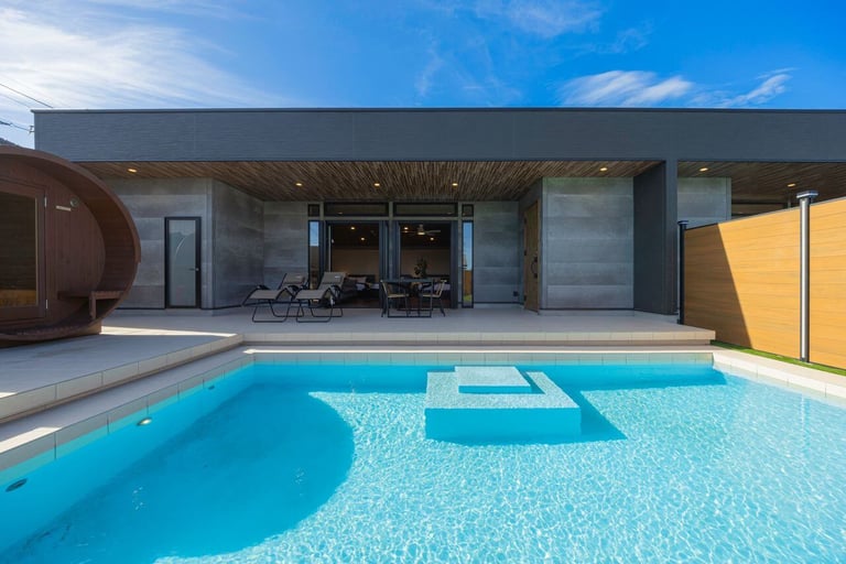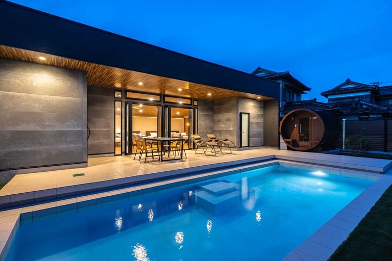 全棟にプライベートプールとサウナ、専用ドッグランを備え、人も愛犬も周囲を気にせず、思い思いに過ごせる空間が整えられています。