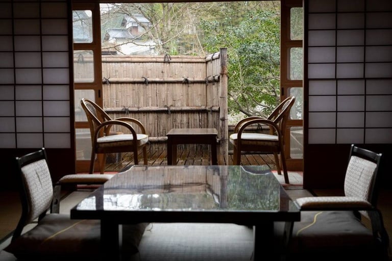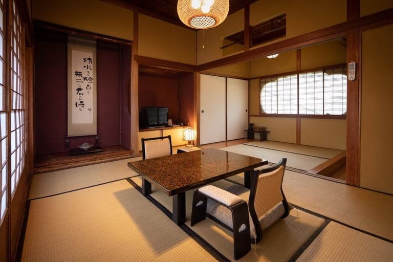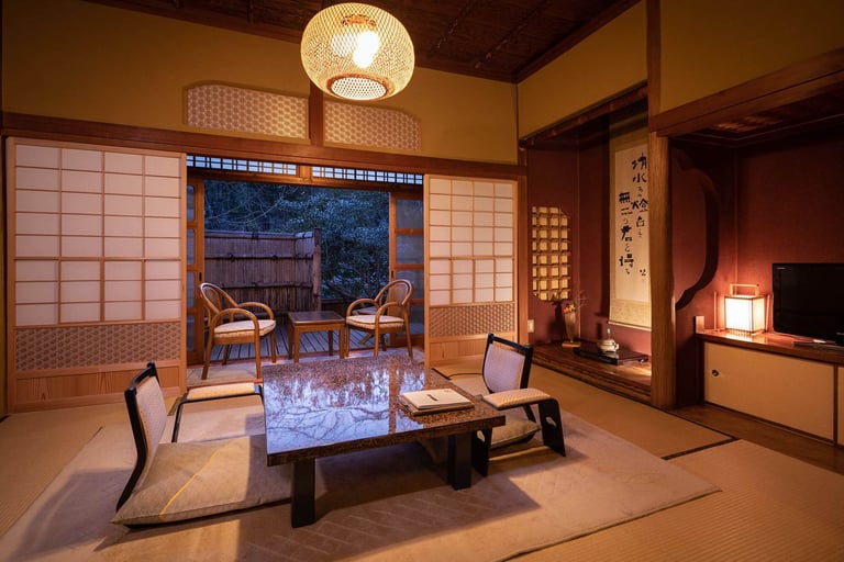 ラウンジでは、日本建築の窓格子の間から差す光や風を抹茶や和菓子とともに味わえます✍️