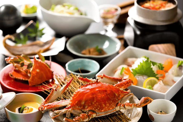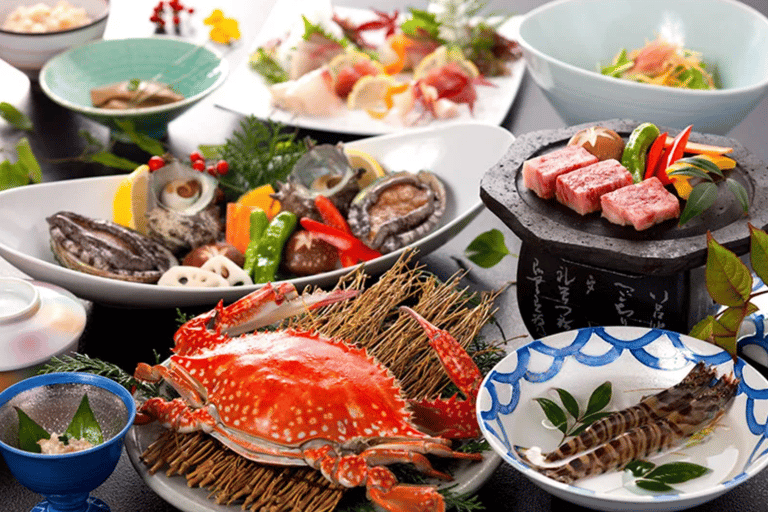 食事は、地元漁師から直接買い付けた新鮮な絶品蟹を心ゆくまで堪能🍽 ベテラン料理人が腕をふるう会席料理から、竹崎蟹・佐賀牛・アワビが味わえる贅沢プランまで、お腹も心も満たさます。